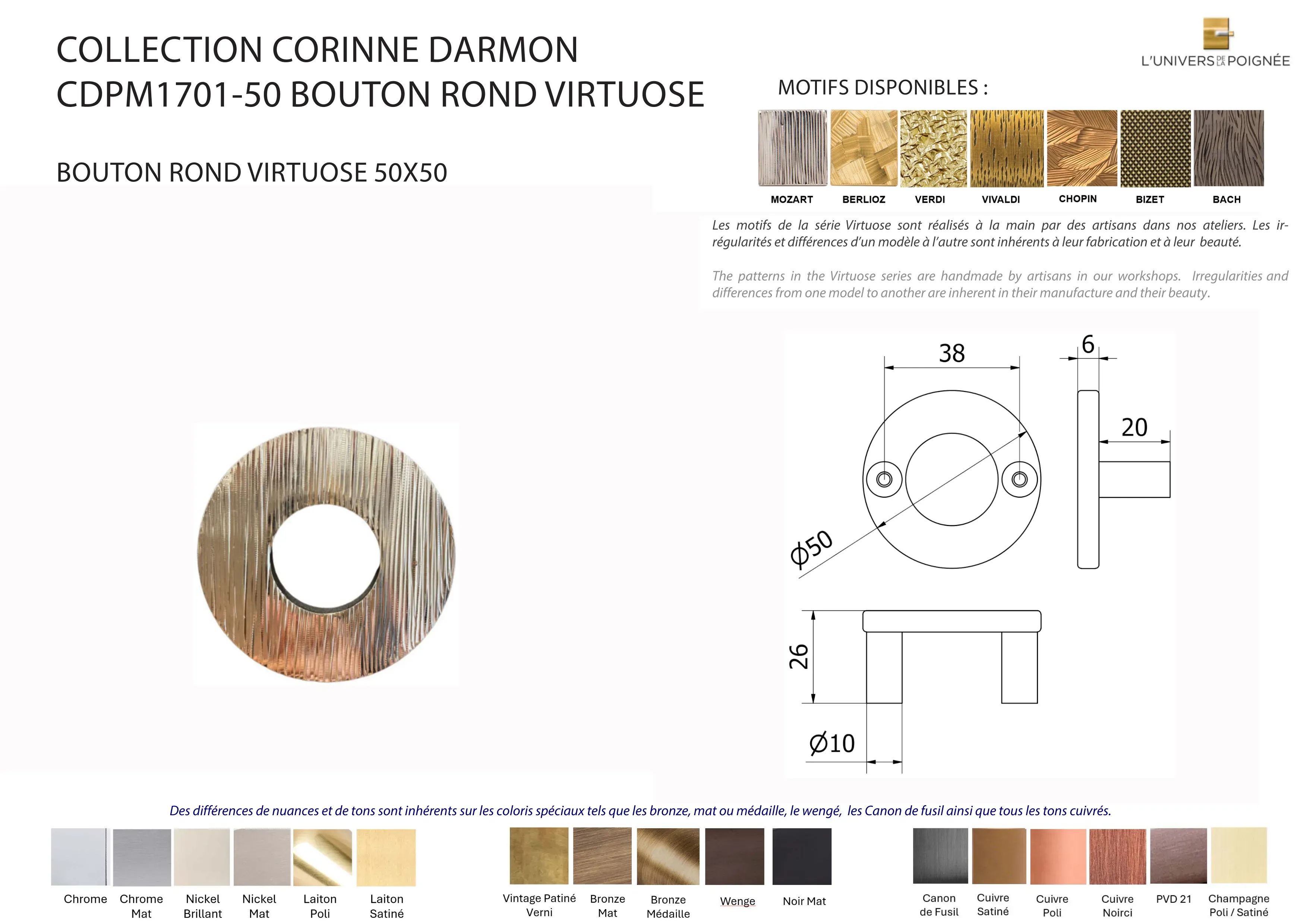 Bouton de meuble CD rond VIRTUOSE 50x50mm