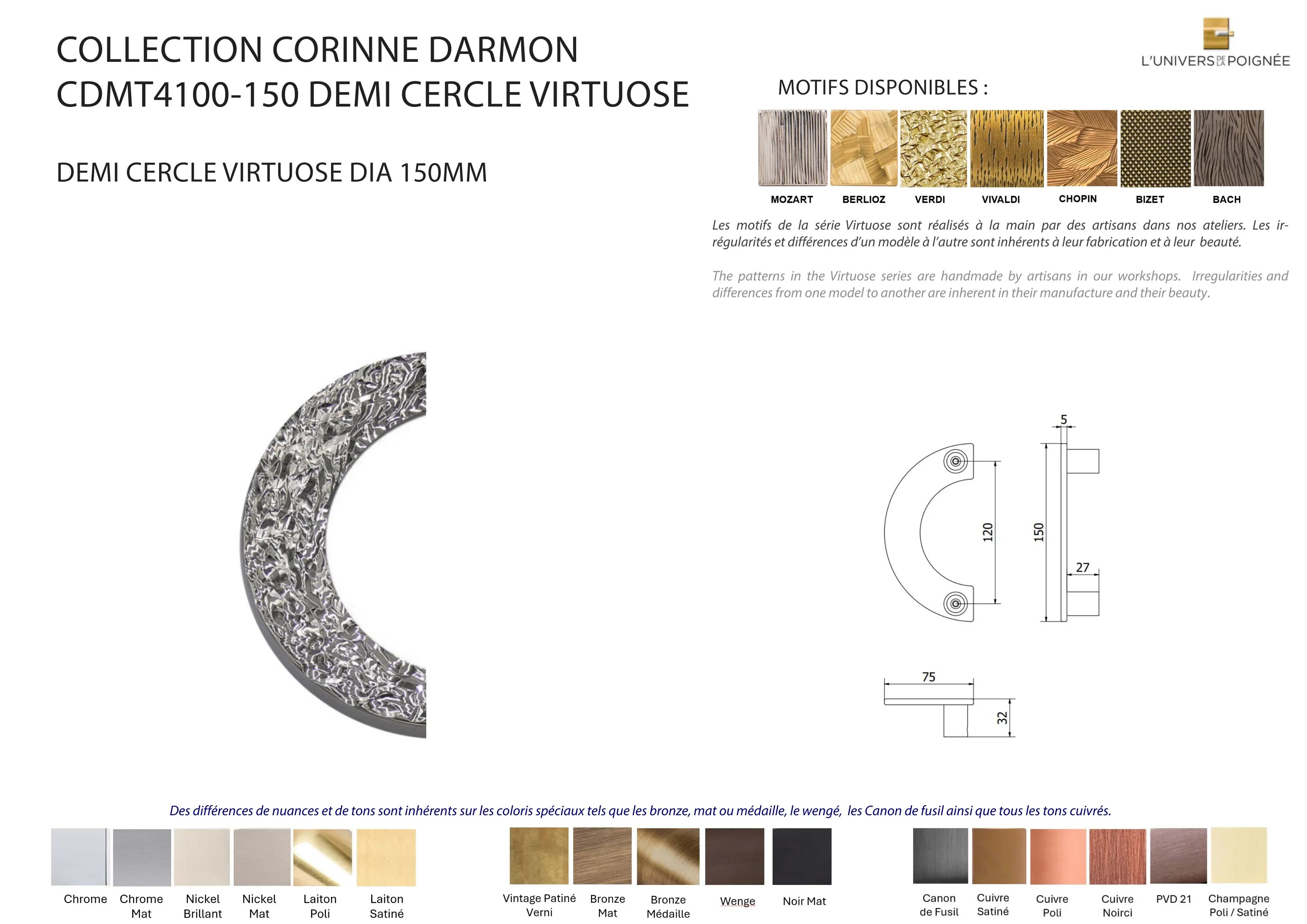 Poignée de tirage 1/2 cercle VIRTUOSE 150mm